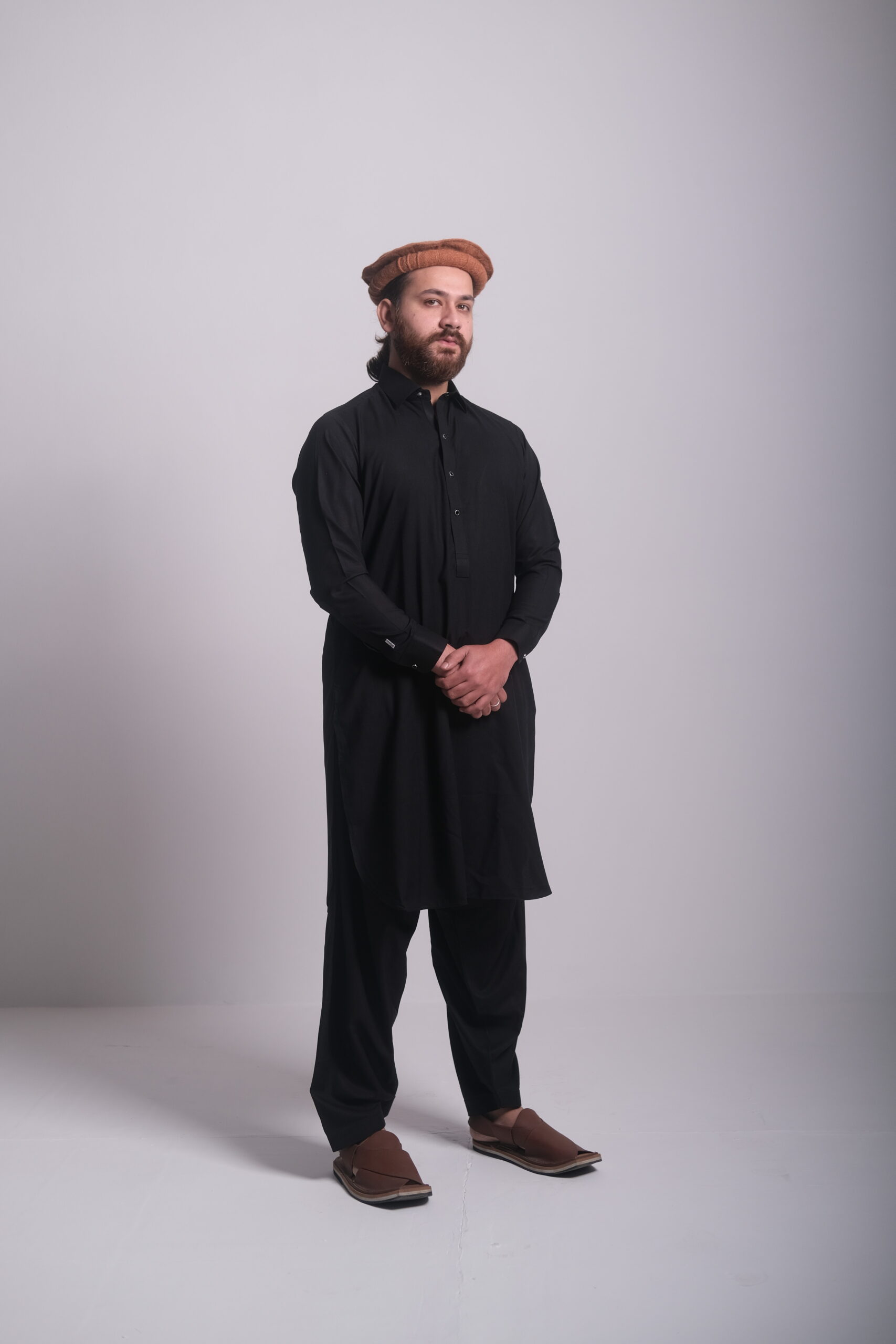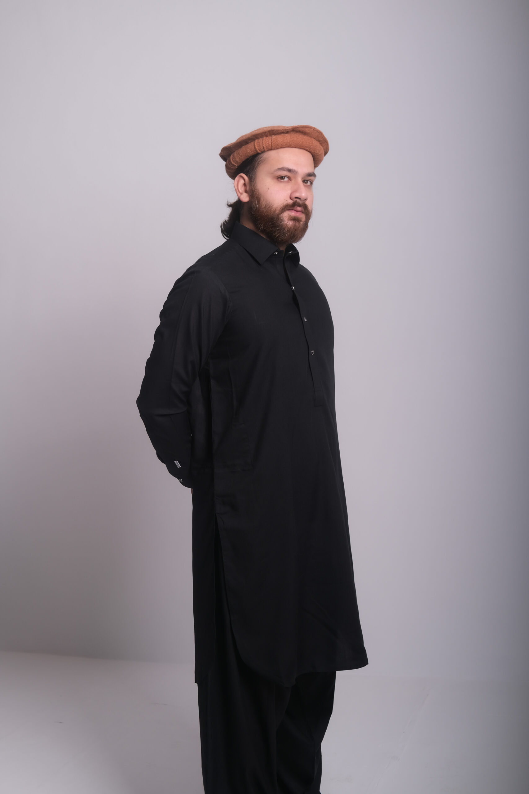 Black boski cotton stitched Pathani shalwar.